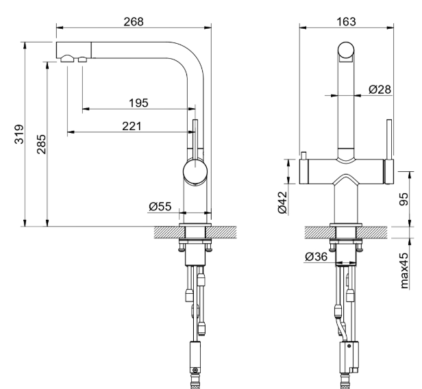 • оснащен высоким изливом, удобен для мытья крупных предметов