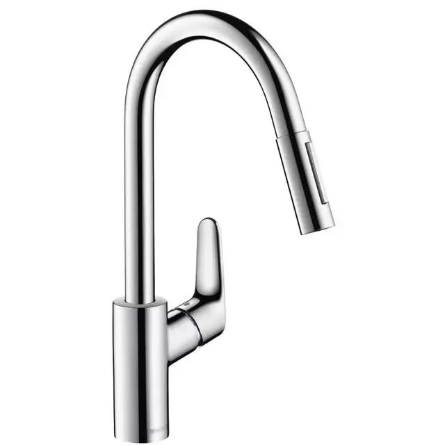 Смеситель для кухни Hansgrohe Focus подходит для проточных водонагревателей, стандартный с обычной и фиксируемой душевой струей. Стильный дизайн украсит любую кухню.