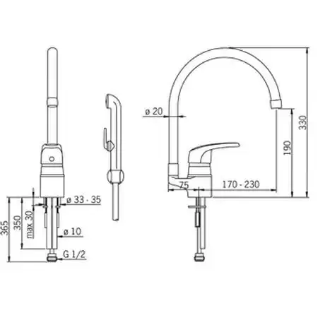 Угол поворота излива 120º, может быть изменен. Двухкомпонентная прочная рукоятка обеспечивает удобство использования.