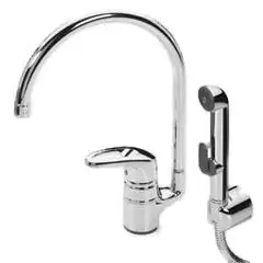 Oras Safira 1033 - это смеситель для кухни с высоким поворотным изливом и ручным душем Bidetta.