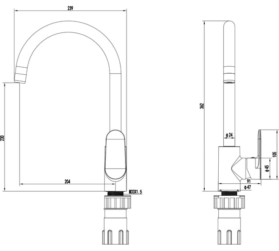 Тип излива: Поворотный