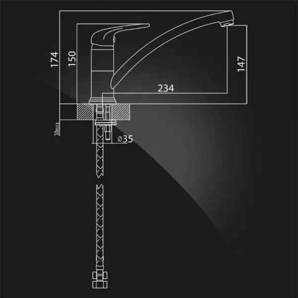 Изящный изгиб излива обеспечивает большую свободу на кухне. Высота до аэратора 147 мм.