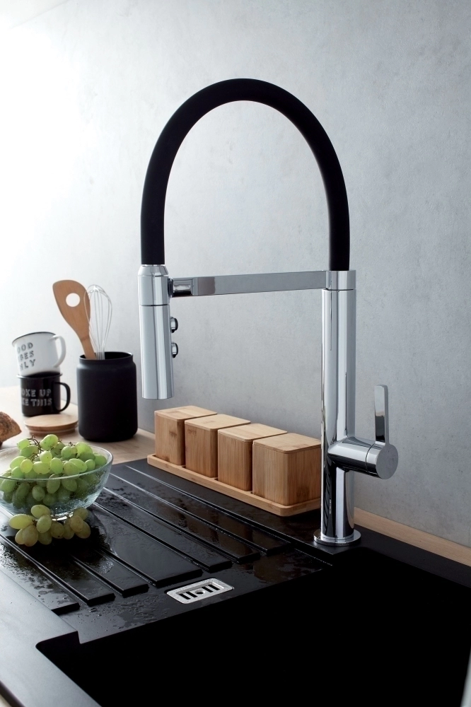 - Raphael, смеситель для кухни, поворотный излив, мультифункциональный излив, черный/хром, арт. E23311-CP