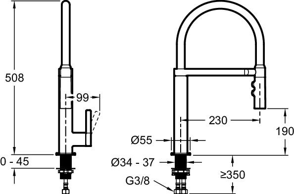 - с выдвижным изливом