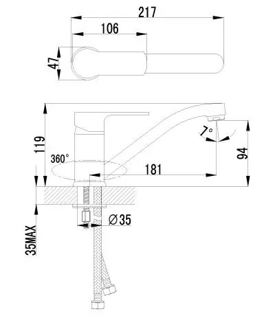 Смеситель для кухни с поворотным изливом, 35 картридж, хром LM1504C Lemark