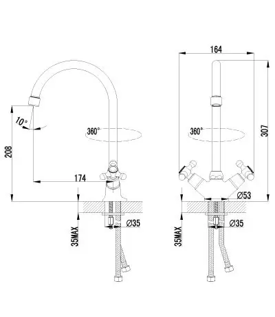 Смеситель для кухни с высоким поворотным изливом 307 мм, хром LM1405C Lemark