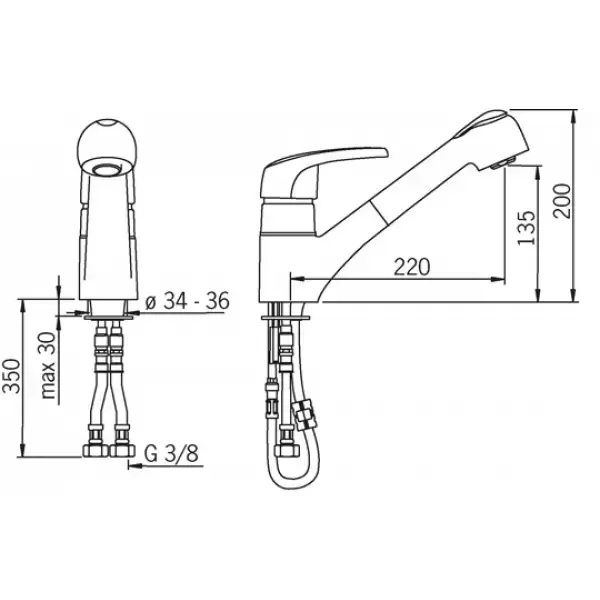 Oras Safira 1032 - это смеситель для кухни с вытягивающимся и поворотным изливом.