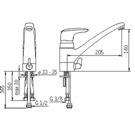 Смеситель специально разработан для установки с посудомоечной машиной. Он имеет дополнительную гибкую подводку G 1/2'', которая подключается к посудомоечной машине. Переключение потока воды от смесителя к посудомоечной ммашине обеспечивает клапан-переключатель.