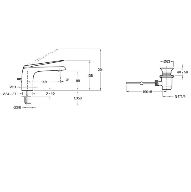 - Донный клапан 1 1/4" - позволяет перекрыть слив со скрытым клапаном и спустить воду одним нажатием переключателя, эстетичное и гигиеничное решение для экономии воды.
