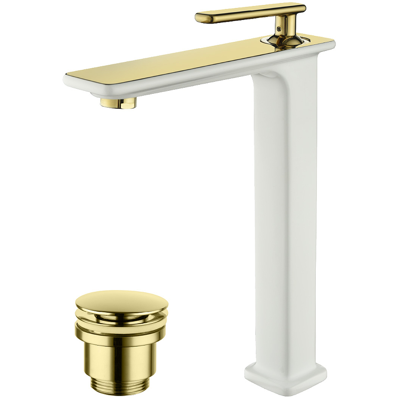 Смеситель Lemark Mista для раковины, белый/золото, LM6409WG