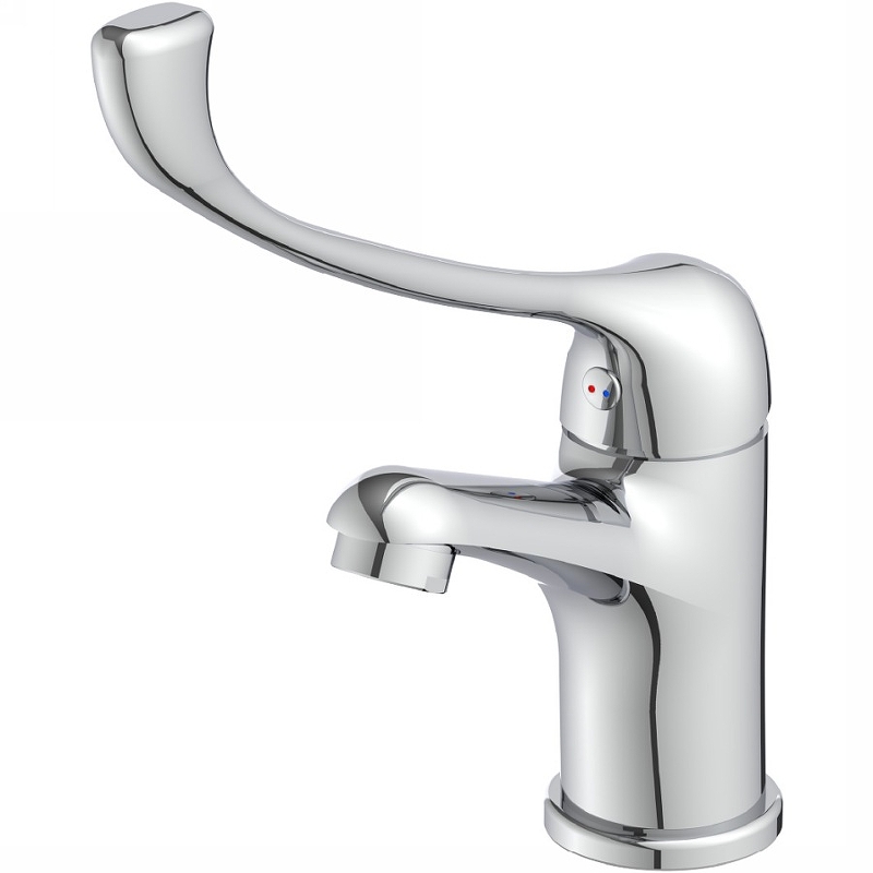 Локтевой смеситель разработан для специализированного использования в медицинских учреждениях и для людей с ограниченными возможностями. Удлиненная ручка дает возможность включать и выключать воду локтем, тем самым повышают гигиеничность и облегчают использование.