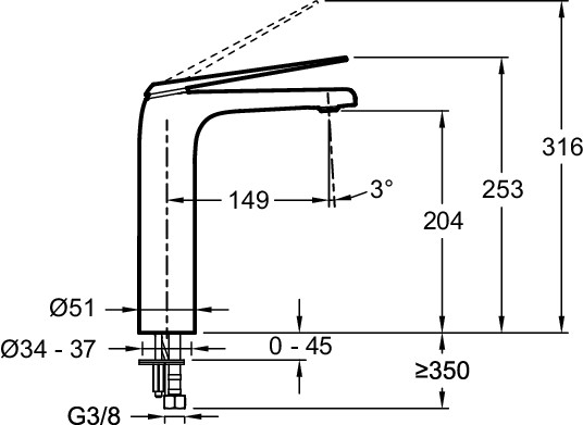- ВЫСОТА ПОД ИЗЛИВОМ : 316 мм
