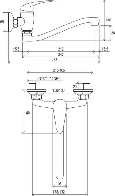 Настенный смеситель для умывальника с керамическим картриджем и поворачивающимся изливом. Межосевой размер 100 мм, устанавливается над умывальником.