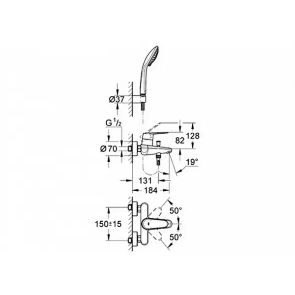 - встроенный обратный клапан в душевом отводе 1/2";
