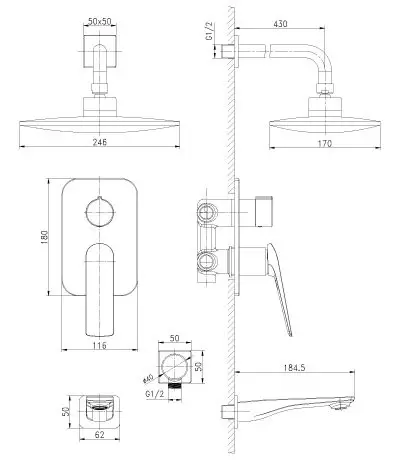 Купить Смеситель для ванны и душа встраиваемый с дополнительной 1-функциональной лейкой, хром/бел Аллегро LM5922CW артикул: 181991 в интернет-магазине ESMAG - Екатеринбург.