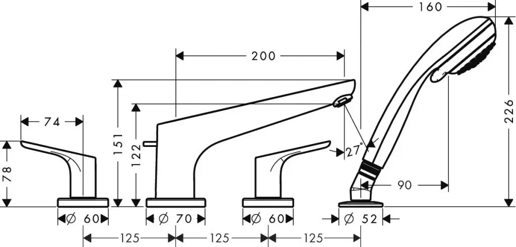 Купить Смеситель для ванны каскадный Focus 4 отв. 31936000 артикул: 28291 в интернет-магазине ESMAG - Екатеринбург.