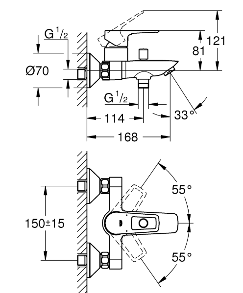 Модель выполнена из прочной латуни с глянцевым хромированным покрытием, которое не только эффектно выглядит, но и устойчиво к коррозии и мелким повреждениям. Смеситель оснащен функцией экономии расхода воды, помогая снизить потребление без потери в комфорте. Монтаж на стену осуществляется через два отверстия, а в комплект входят эксцентрики для простой и точной установки.