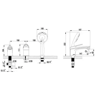 Купить Смеситель для ванны встраиваемый, на три отверстия, с аксессуарами, хром LM4145C Lemark артикул: 171310 в интернет-магазине ESMAG - Екатеринбург.