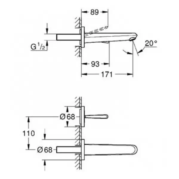 Купить Смеситель Eurodisc Joy для умывальника на 2 отверстия настенный вынос 170 мм M-Size 19968000 артикул: 117337 в интернет-магазине ESMAG - Екатеринбург.