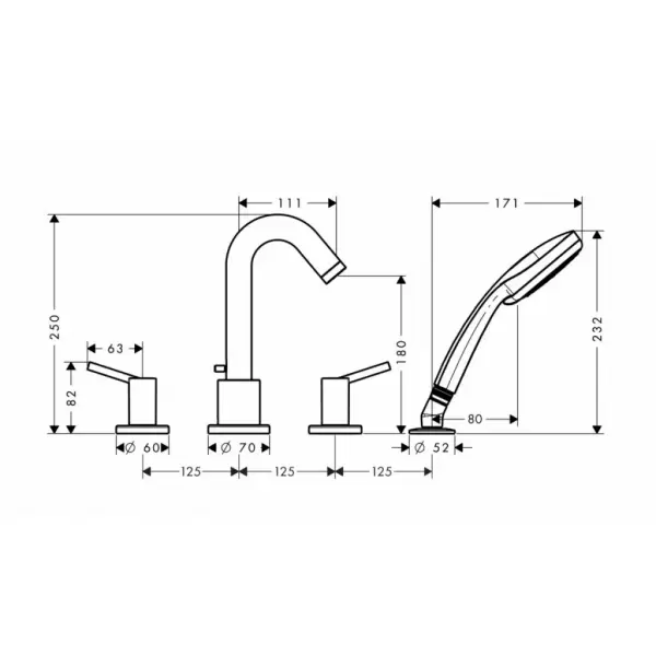 Купить Смеситель на край ванны на 4 отверстияTalis 32314000 артикул: 139872 в интернет-магазине ESMAG - Екатеринбург.