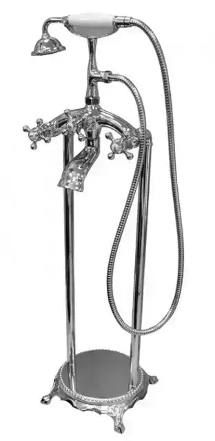 Напольный смеситель для душа COMFORTY FE0051-CCT с ручной душевой лейкой, шлангом 1.5 м, держателем для лейки, расположенным прямо на смесителе и стойкой.