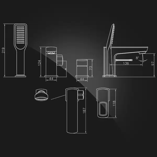 Смеситель предназначен для установки на борт ванны. Встроенный керамический переключатель на душевую лейку. Выдвижной шланг 200 см. Длина излива 136 мм.
