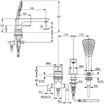 Смеситель однорычажный на борт ванны AMEO на 3 отверстия хром 414470575 KLUDI в г.Екатеринбург