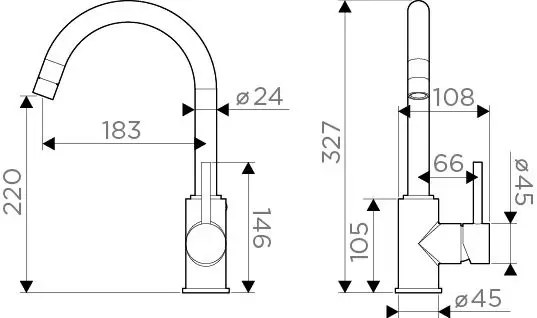 - Практичный однорычажный смеситель выполнен в современном стиле и снабжен высоким поворотным изливом.