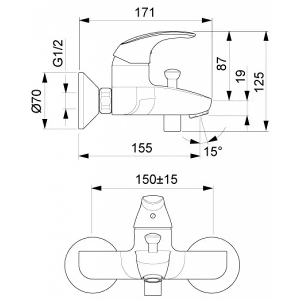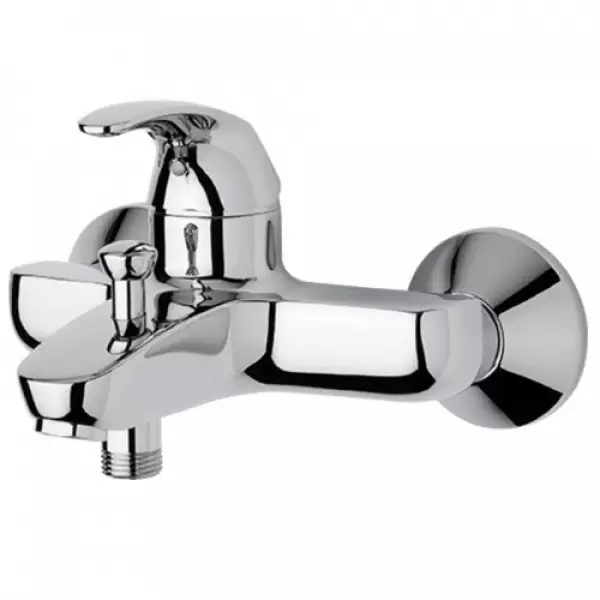 Смеситель для ванны и душа. Фиксированный излив, дивертер и аэратор. Комплект включает эксцентриковые соединители и декоративные розетки.