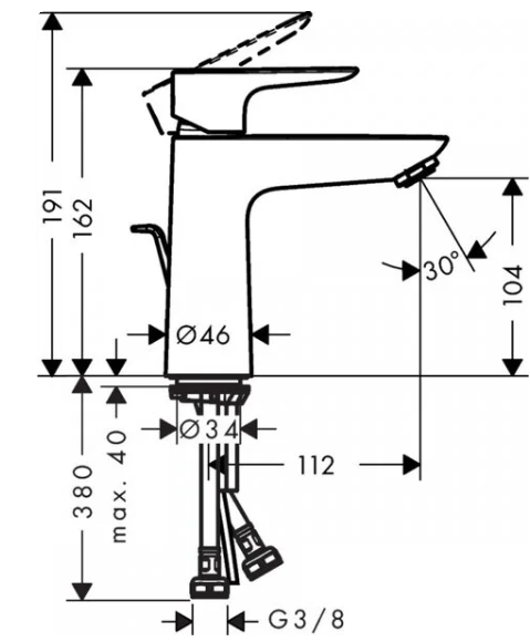 состоит из: однорычажный смеситель для раковины, слив/перелив
