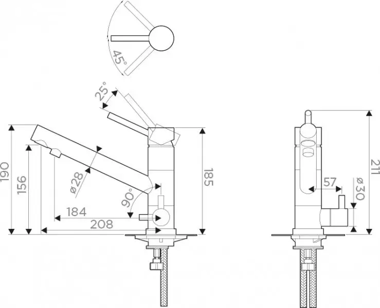 Длина излива: 208 мм
