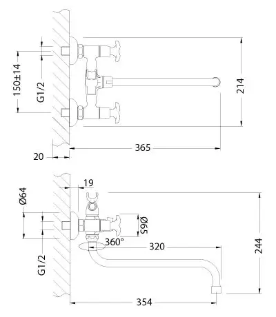 - Аксессуары в комплекте: шланг 1,5 м, настенное крепление, 1-функциональная лейка Ø100 мм