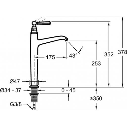 - Cleo 35,2см, высокий смеситель на столешницу, неповоротный излив, без донного клапана, арт. E24309-CP, Jacob Delafon