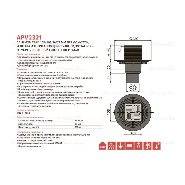 Купить Сливной трап APV2321 артикул: 121387 в интернет-магазине ESMAG - Екатеринбург.