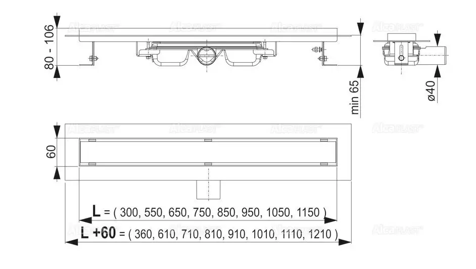 Купить Водоотводящий желоб с порогами для цельной решетки APZ106-650 ALCAPLAST артикул: 162985 в интернет-магазине ESMAG - Екатеринбург.