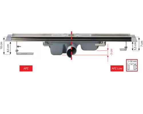 Водоотводящий желоб ALCAPLAST APZ1-300 для установки перфорированной решетки.