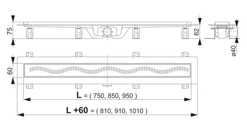 Водоотводящий желоб ALCAPLAST APZ8-850М для перфорированной решетки.
