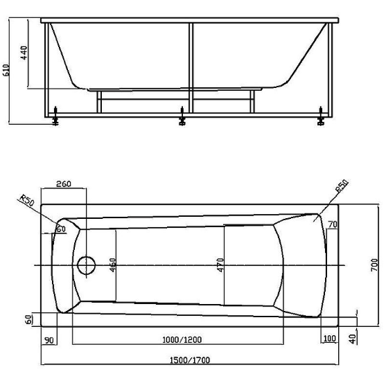 Прямоугольная форма ванны обеспечивает комфортное размещение и удобство использования. Размеры ванны составляют 170х70х61 см, что позволяет разместить ее даже в небольших помещениях. Глубина ванны составляет 44 см, что обеспечивает достаточное пространство для комфортного принятия ванны.