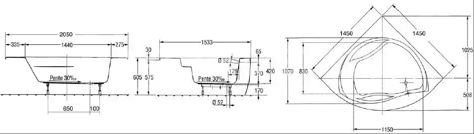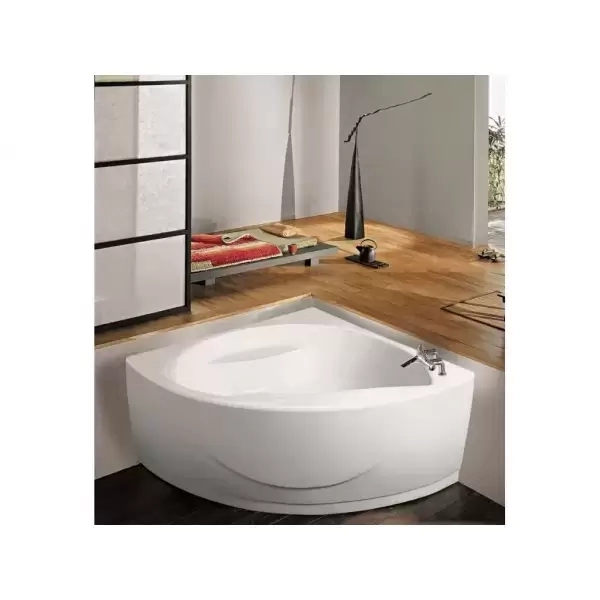 Угловая акриловая ванна с регулируемыми ножками и подлокотниками.