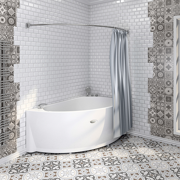 Карниз для шторки на ванну «Бергамо» — угловой карниз радиальной формы с размерами 168х100 см. Его изгиб копирует контуры одноименной ванны, что обеспечивает практичность конструкции. Карниз выглядит модно и прекрасно смотрится в любом интерьере.
