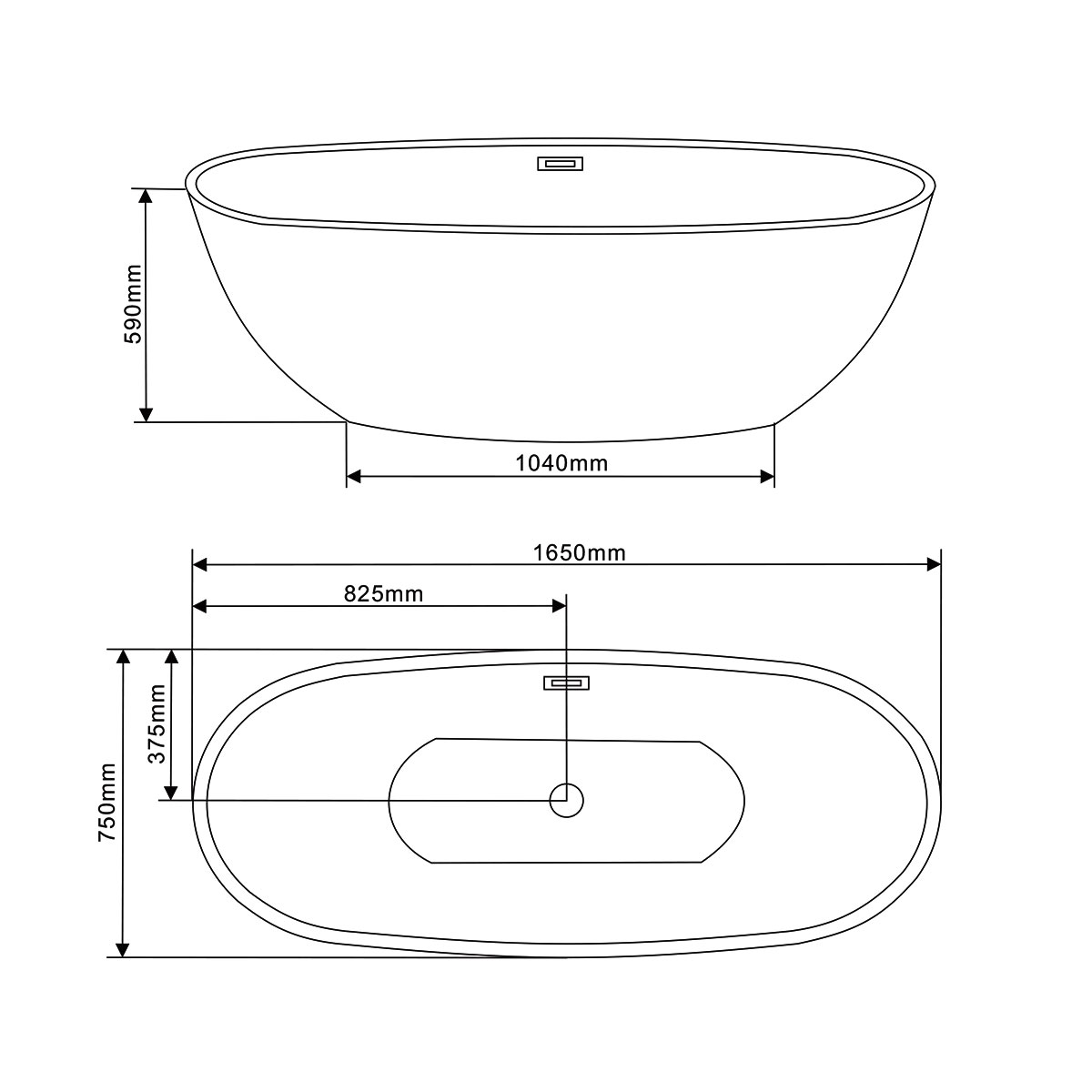 Ванна акриловая 1650*750*590, цвет белый, слив-перелив в комплекте, хром VBT-509 Vincea в г.Екатеринбург
