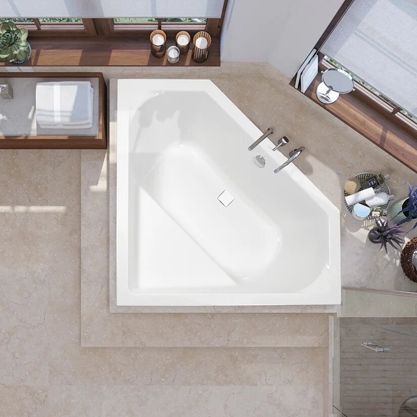 Классические прямоугольные модели обычно устанавливаются вдоль стены. Овальные ванны очень изящны, поэтому, как правило, их не закрывают каркасом, а дополнительно снабжают тонкими ножками, благодаря чему ванны элегантно смотрятся. Угловые и полукруглые ванны помогают сэкономить место в небольших помещениях. Круглая форма - в основном приоритет встраиваемых ванн, но нередко встречаются и свободностоящие варианты. Квадратные ванны обязательно потребуют много места. Нестандартной (ассиметричной) и многогранной форме отдают предпочтение люди, ищущие нестандартный подход к планировке квартиры.