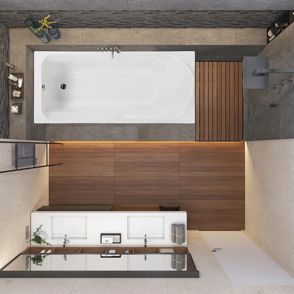 Классические прямоугольные модели обычно устанавливаются вдоль стены. Овальные ванны очень изящны, поэтому, как правило, их не закрывают каркасом, а дополнительно снабжают тонкими ножками, благодаря чему ванны элегантно смотрятся. Угловые и полукруглые ванны помогают сэкономить место в небольших помещениях. Круглая форма - в основном приоритет встраиваемых ванн, но нередко встречаются и свободностоящие варианты. Квадратные ванны обязательно потребуют много места. Нестандартной (ассиметричной) и многогранной форме отдают предпочтение люди, ищущие нестандартный подход к планировке квартиры.