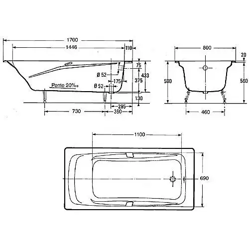 Ванна чугунная REPOS 1700х800 E2915 Jacob Delafon.