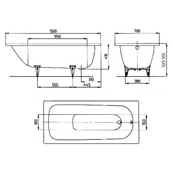 Ванна, серия SANIFORM PLUS Mod.361-1, размер 1500*700*410, Easy clean, alpine white, без ножек Kaldewei.