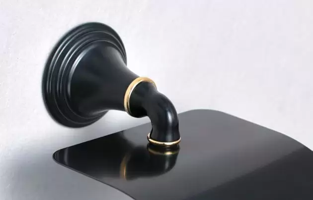 Нестандартный чёрный цвет коллекции подчеркнут полированными золотистыми вставками. Керамические колбы черного цвета передают всю глубину отражающихся поверхностей. Металлические части аксессуаров покрыты долговечной эмалью, которая рассеивает свет, падающий на их поверхности. Сложное сочетание глянца и полуматовой текстуры создают неповторимый вид изделия.