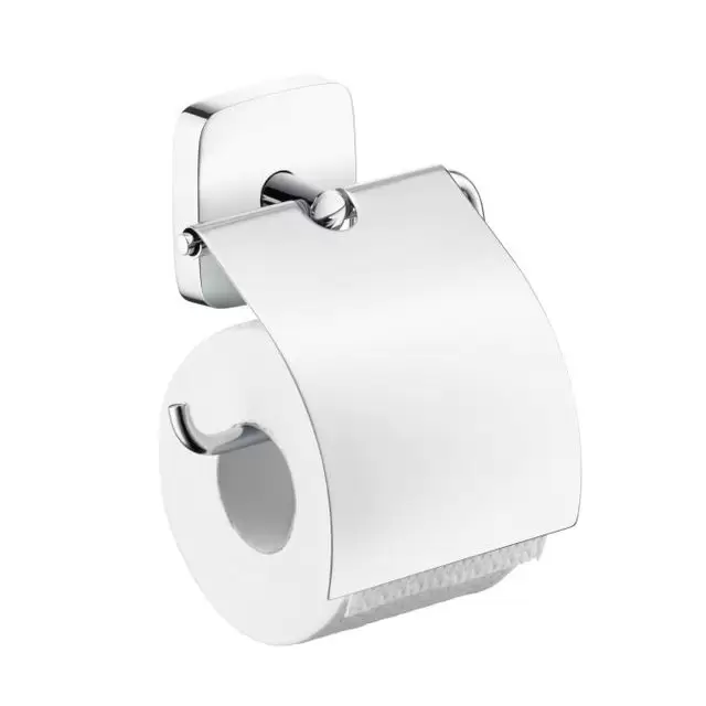 Hansgrohe PuraVida 41508000 это держатель туалетной бумаги из латуни цвета хром. Данный аксессуар крепится к стене. Имеется крышка из латуни поверх рулона туалетной бумаги.
