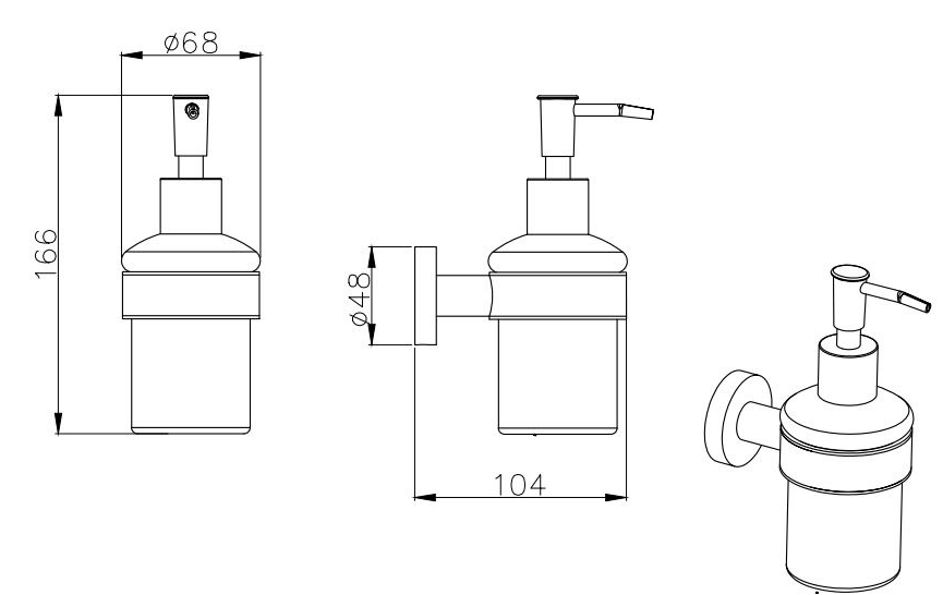 Общий размер (мм): 104*68*166