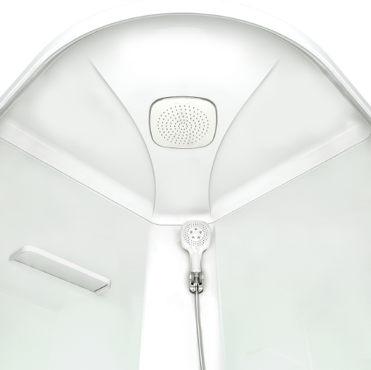Наличие верхнего тропического душа на потолке кабины. Специальная насадка разделяет поток воды на мелкие брызги, которые могут быть смешаны с аромамаслами. Рекомендуется для расслабления, например, перед сном.