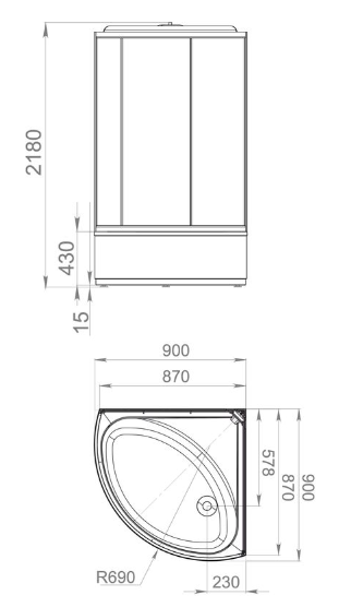 Габаритные размеры ДхВхШ: 900*2180*900 мм